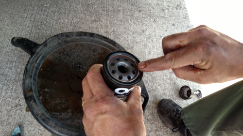 Wipe the area on the engine where the filter installs with a clean rag. Put a thin layer of clean oil around the rubber gasket on the new oil filter and reinstall the filter. Snug the filter to get a good seal, but do to over-tighten it.