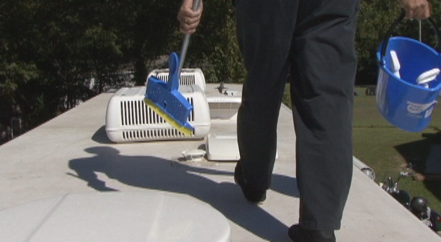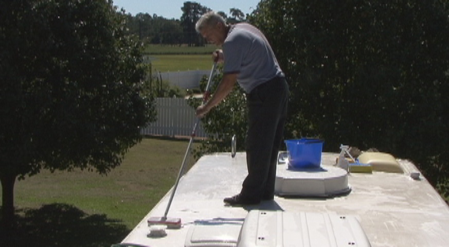 Work from the front of the RV to the rear. It may be necessary to repeat the cleaning process on dirty roof surfaces or stubborn stains. If an area of the roof is really dirty, or difficult to clean I find that using a wash mitt with some good old-fashioned elbow grease works the best.