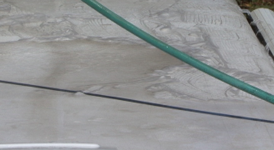 After you clean an area, rinse it off with water. As you rinse the dirty water and used cleaner off of the roof, rinse the sides of the RV to prevent any staining. I find it works best to have somebody on the ground who can keep the sides, front and rear of the RV rinsed off.