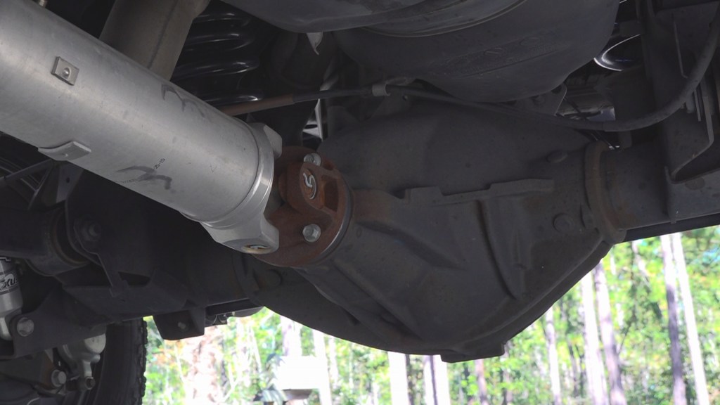 From the transmission, the power is delivered to the rear axle by way of the driveshaft. From there, the axle uses a pinion and ring gear to get the power to both rear wheels. Axles come with different gear sets, which is typically referred to as the axle ratio. The axle ratio is a comparison of how many times the drive shaft rotates in relationship to how many times the rear wheels rotate.