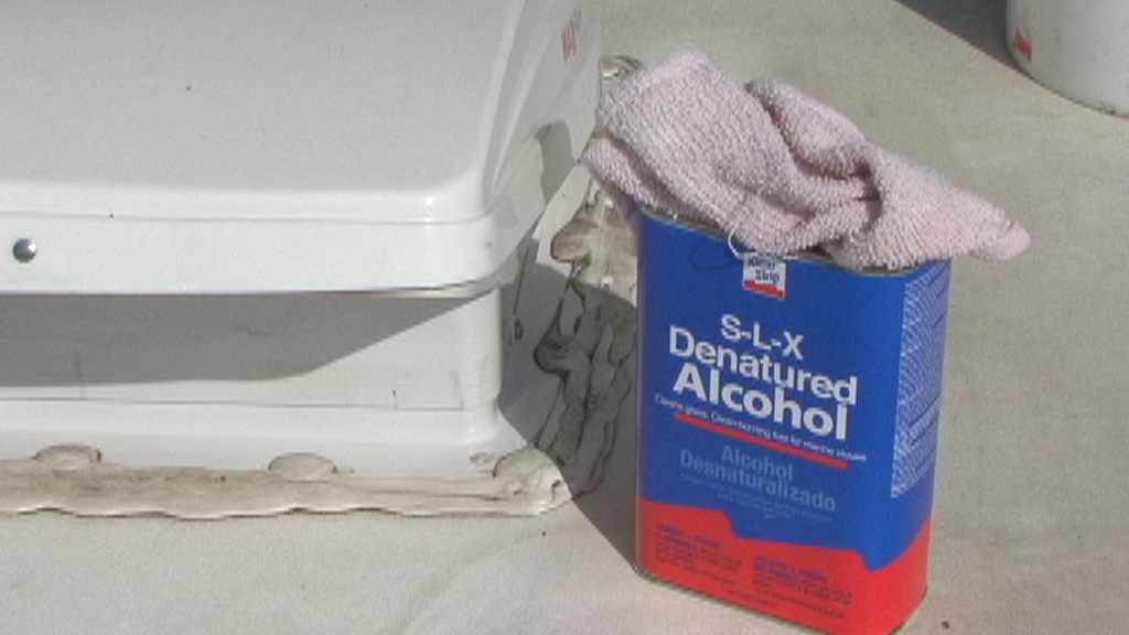Note: Do not saturate the roof’s surface with denatured alcohol, and make sure you use the correct sealant for the roof’s surface. Consult your RV owner’s manual or local RV dealer for the proper sealant.