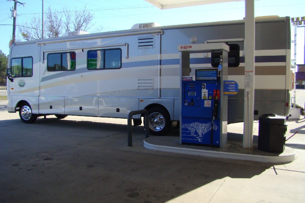 Tail-swing is the distance the overhang, or the portion of the RV’s body that extends behind the pivot point, moves in the opposite direction you are turning in. In some cases, it can be as much as 30 inches. This means if you are only parked 24 inches away from the concrete barrier at a gas pump and you turn away from the pump to exit the gas station, tail-swing can cause the rear of the RV to hit the concrete barrier. Accidents like this happen every day.