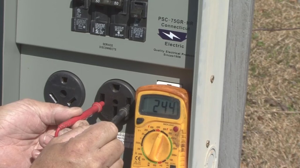 If you measure the voltage across both hot leads at the receptacle you will get a reading of 240-volts, but it’s important to understand that a 50-amp RV service uses the two separate 50-amp 120-volt hot legs to supply power to the RV.